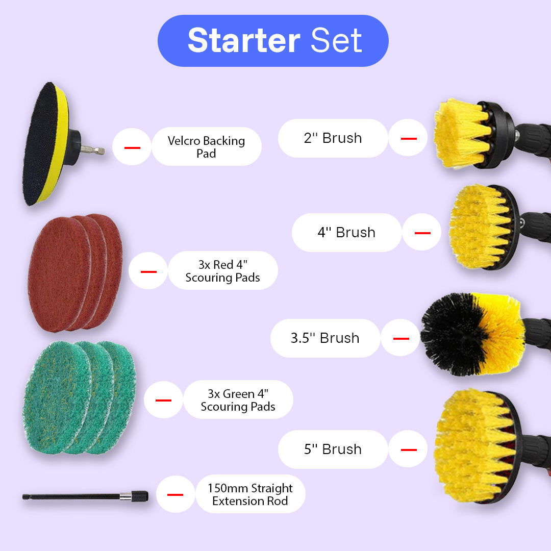 Includes scouring pads and sponge wipes for delicate and heavy-duty jobs.